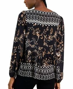 Vibrant florals drift into bold contrast tones, bringing a stunning new look to JM Collection’s relaxed knit top.