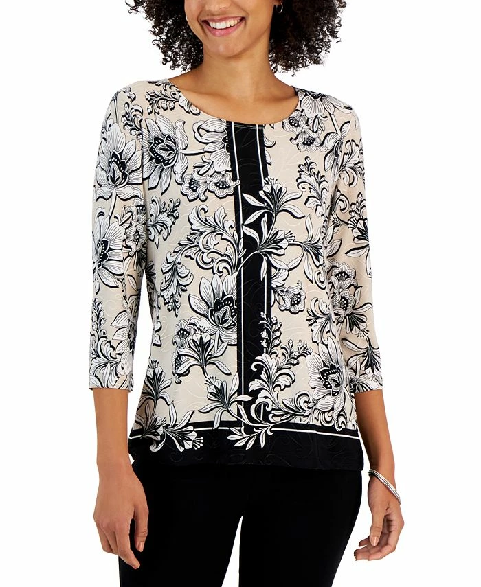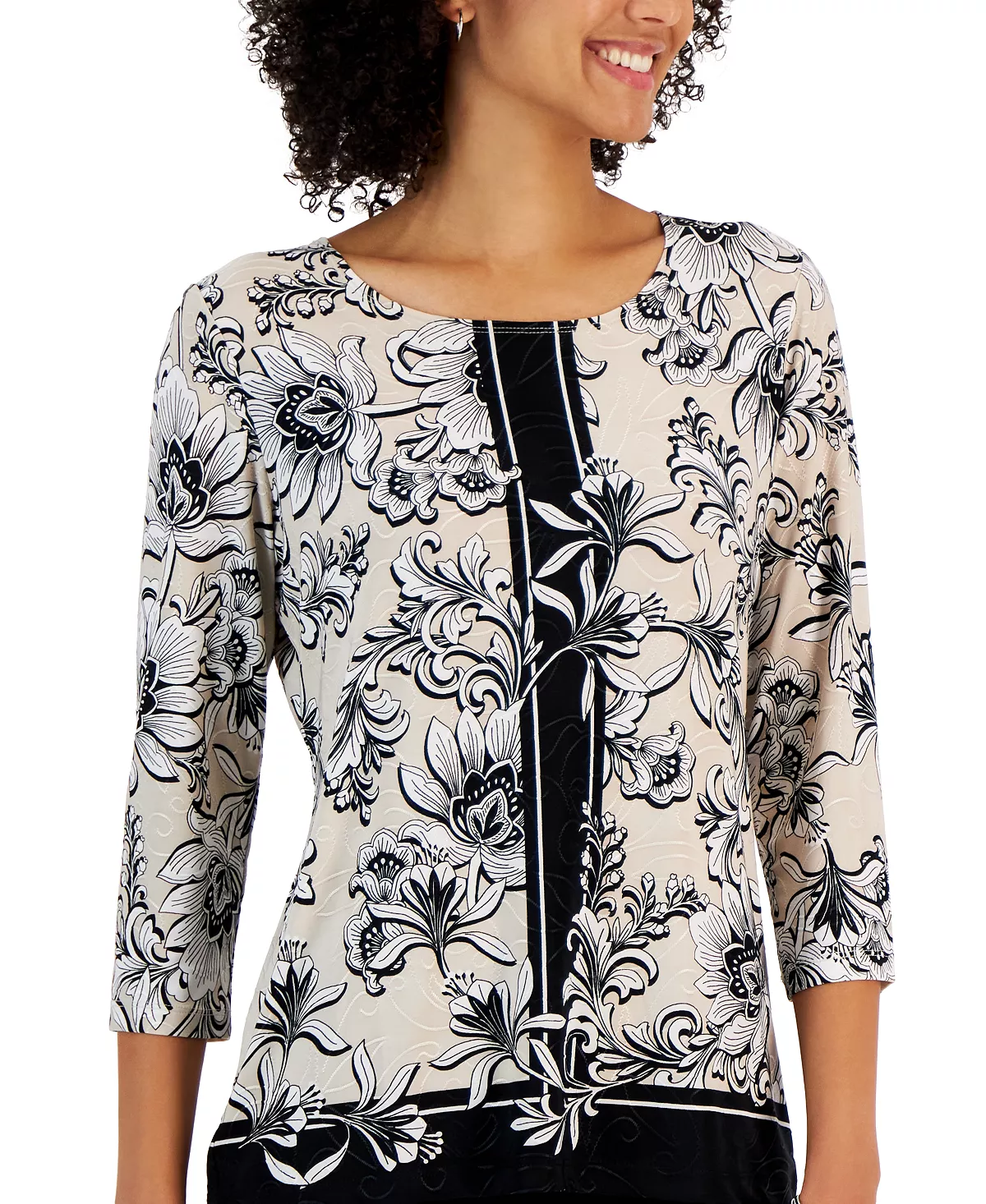 JM Collection Women’s Jazz Wallpaper 3/4-Sleeve Top, Created For Macy’s