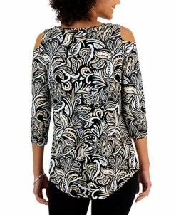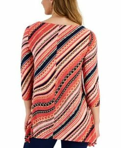 With 3/4-bell sleeves and an allover geometric print, this top from JM Collection shines when paired with your favorite leggings.