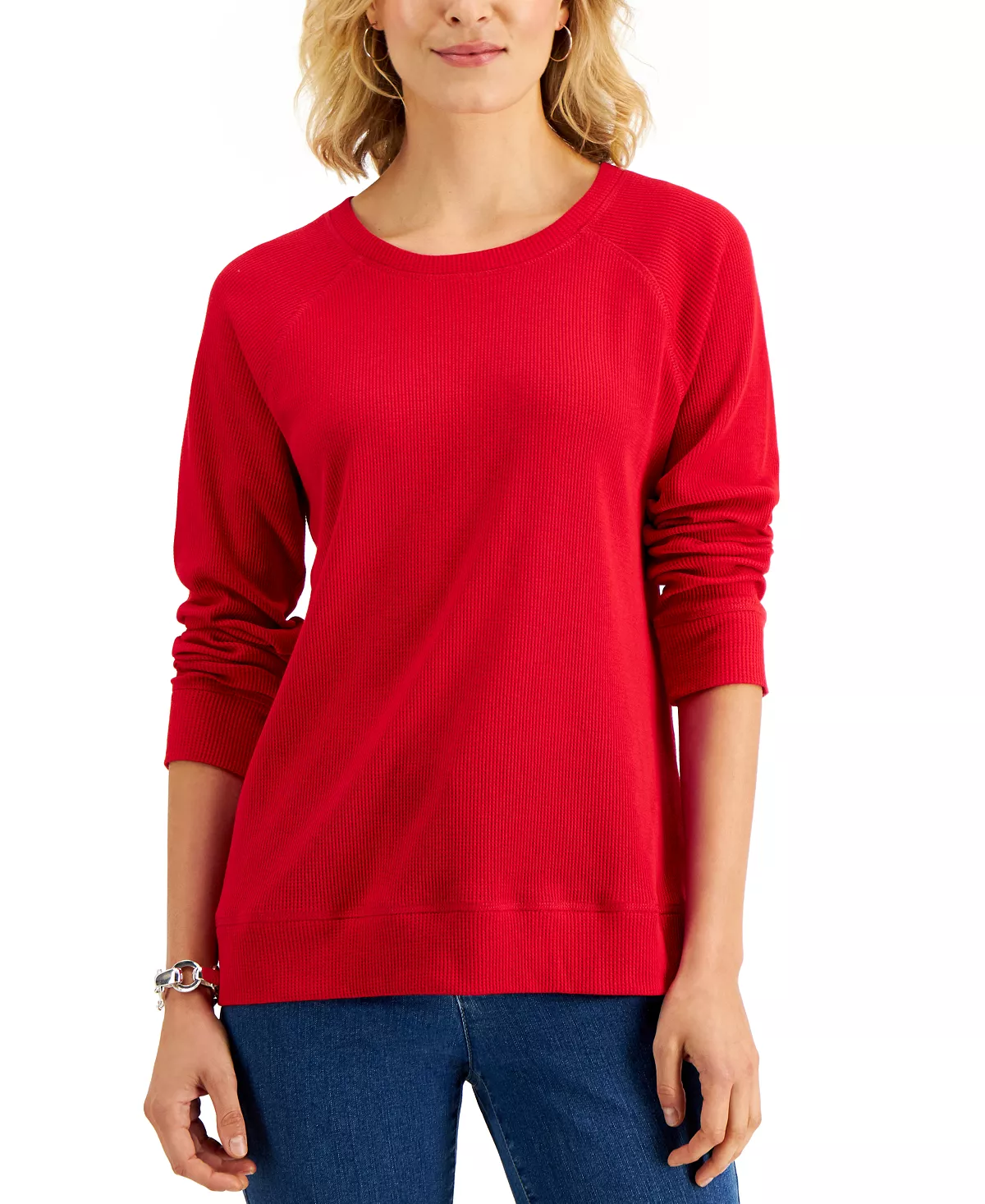 A subtle waffled texture adds the perfect casual finish to this crewneck top from Karen Scott.