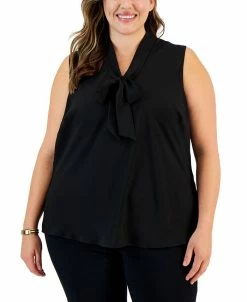 A bow tie falls from the neckline of this plus size top from Kasper, a career-inspired pick with a sleeveless silhouette.