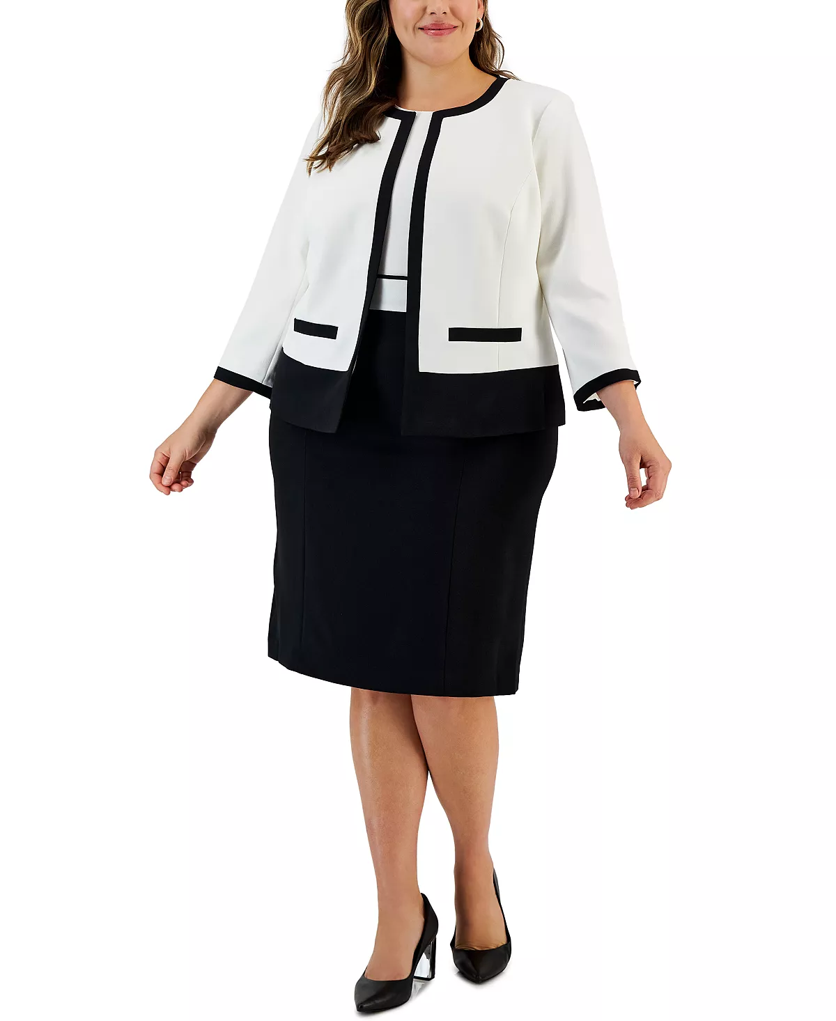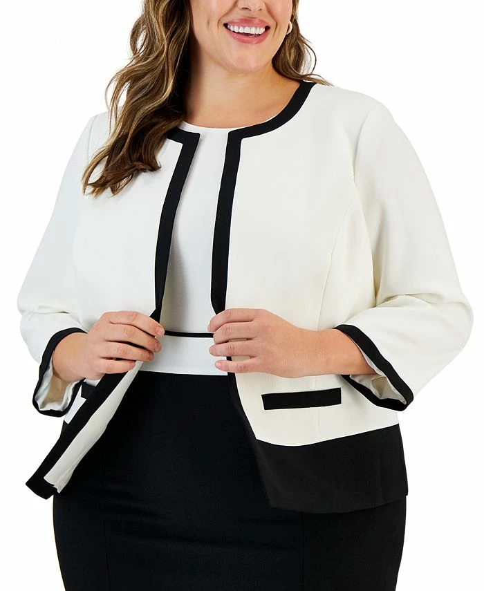 Polished contrast-trim frames this classic plus size jacket by Kasper, a timeless staple that adds instant sophistication to your workwear ensemble.