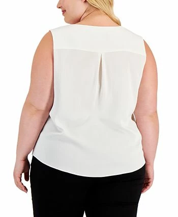 A tiny bar embellishment highlights the classic V-neck on this plus size camisole from Kasper.