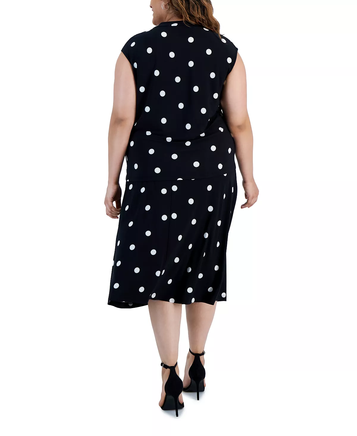 Designed to flatter the plus size figure, Kasper brings printed perfection to your wardrobe with this polka dot midi skirt and cowl neck sleeveless top.