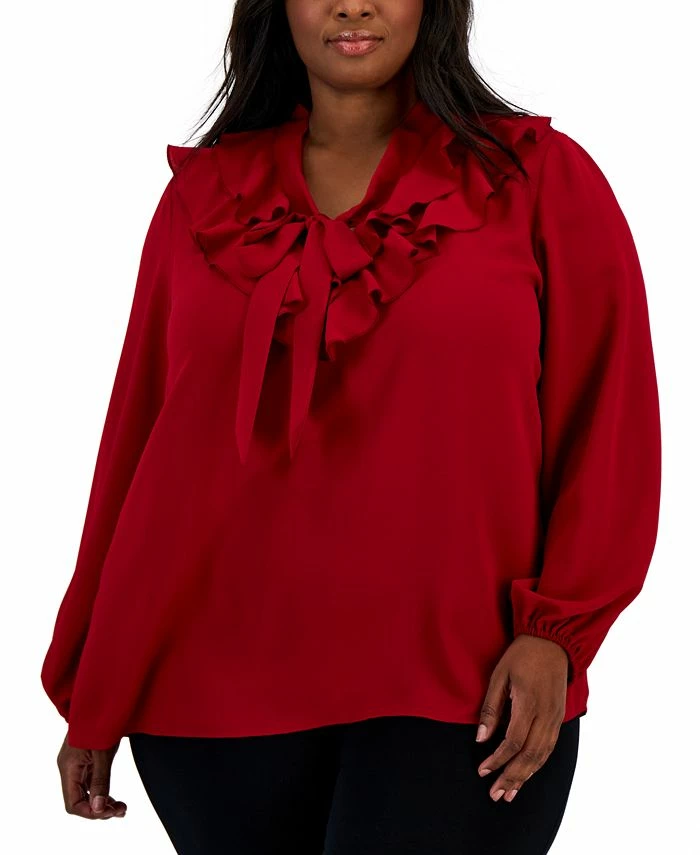 Ravishing in ruffles, this plus size blouse by Kasper will effortlessly elevate your workweek ensemble.