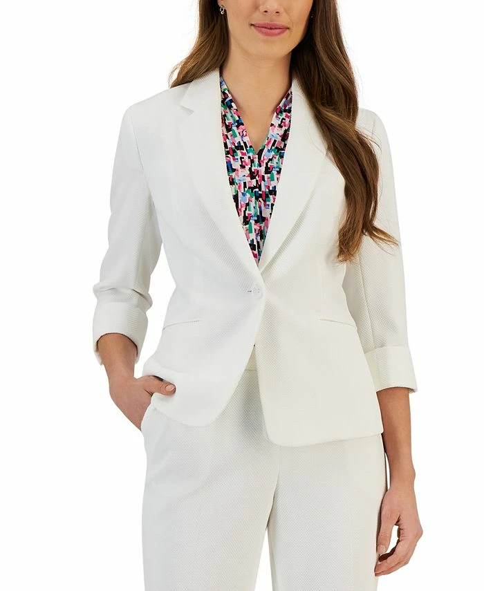 Top off your work look with this chic 3/4-sleeve blazer from Kasper and feel confident all day.
