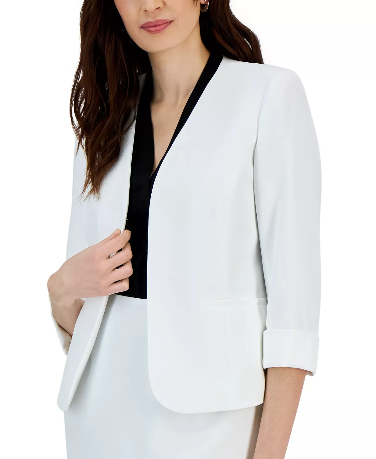 Kasper Women’s Collarless Open-Front 3/4-Sleeve Blazer