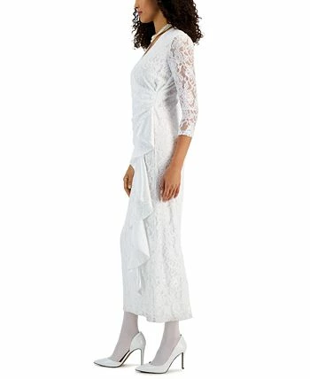 Kasper Women’s Lace Ruched Cascading Ruffle Maxi Dress