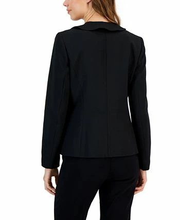 A ruffled neckline brings feminine flair to the professional polish of this two-button jacket from Kasper.