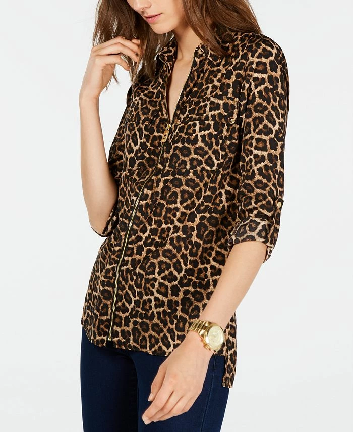 Trust your instincts and go for Michael Michael Kors’ leopard-print top with a flash of gold-tone hardware. We love it with simple black pants or a figure-hugging pencil skirt.