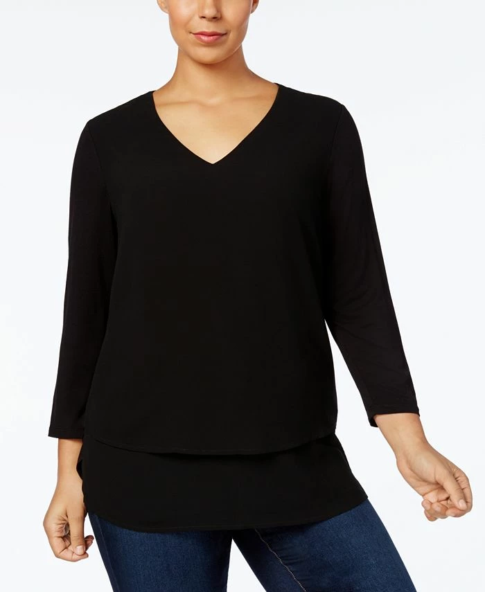Subtle details elevate the look of this plus size V-neck tunic from MICHAEL Michael Kors. The front is designed in a flattering stretch knit, while the back features an airy woven fabric.