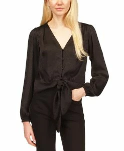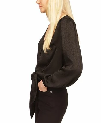Understated in a tonal animal print, this MICHAEL Michael Kors top features shirred shoulders for stylish drape finished with a tie at the hem.