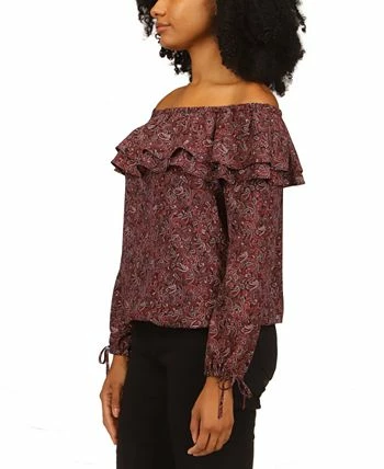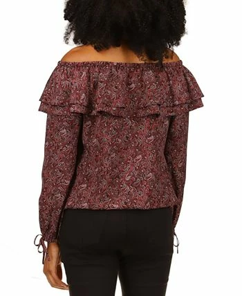 Swirling rich shades of Pop Paisley pebble crepe are ruffled at the off-the-shoulder neckline and tied at the wrists of this stunning top from MICHAEL Michael Kors.