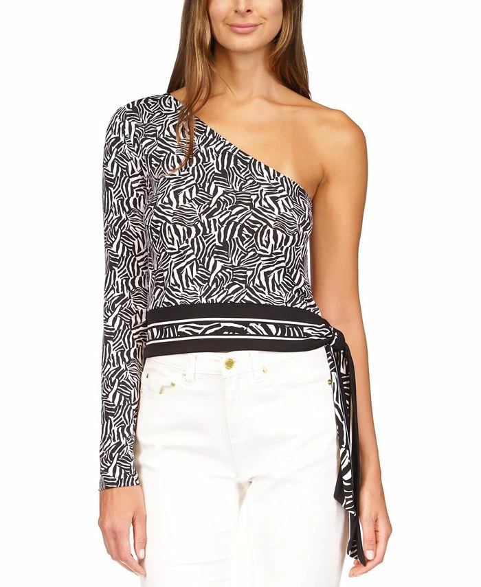 You’re stunning after hours in this fierce look from MICHAEL Michael Kors, a jersey top with a single sleeve and tie at the hem.