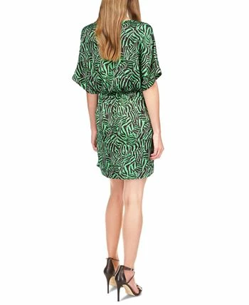 Chic in hammered satin, this MICHAEL Michael Kors wrap dress features a vibrant zebra print and easy dolman sleeves.