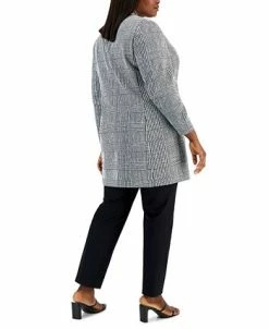 Kasper Plus Size Houndstooth-Plaid Two-Button Longline Blazer