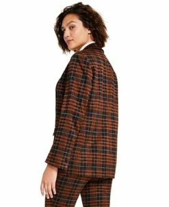 Bar III Women’s Plaid One-Button Boyfriend Blazer & Plaid Flare Leg Pants, Created For Macy’s