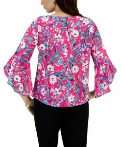 Kasper Floral Printed Ruffle 3/4-Sleeve Blouse