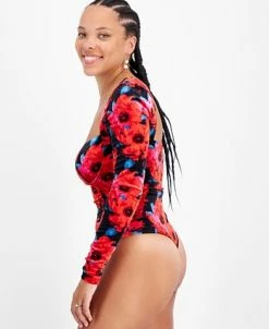 Bar III Women’s Floral-Print Square-Neck Velvet Bodysuit, Created For Macy’s
