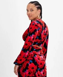 Bar III Women’s Floral-Print Cropped Velvet Top, Created For Macy’s