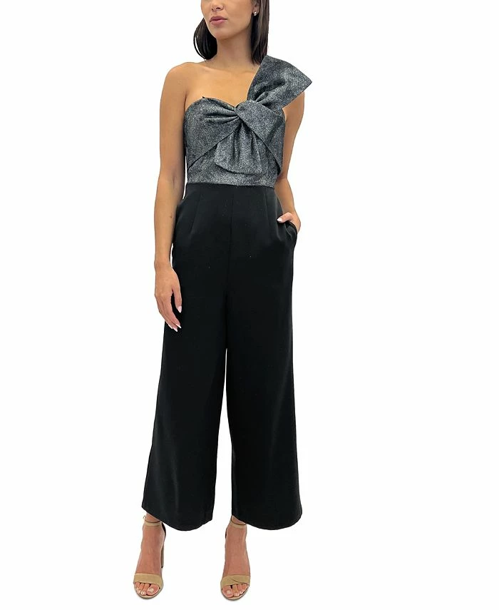 Glittering with a jumbo bow at the strapless bodice, Sam Edelman’s Cady wide-leg jumpsuit is styled for a celebration.
