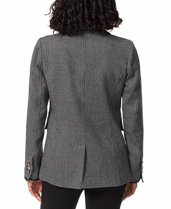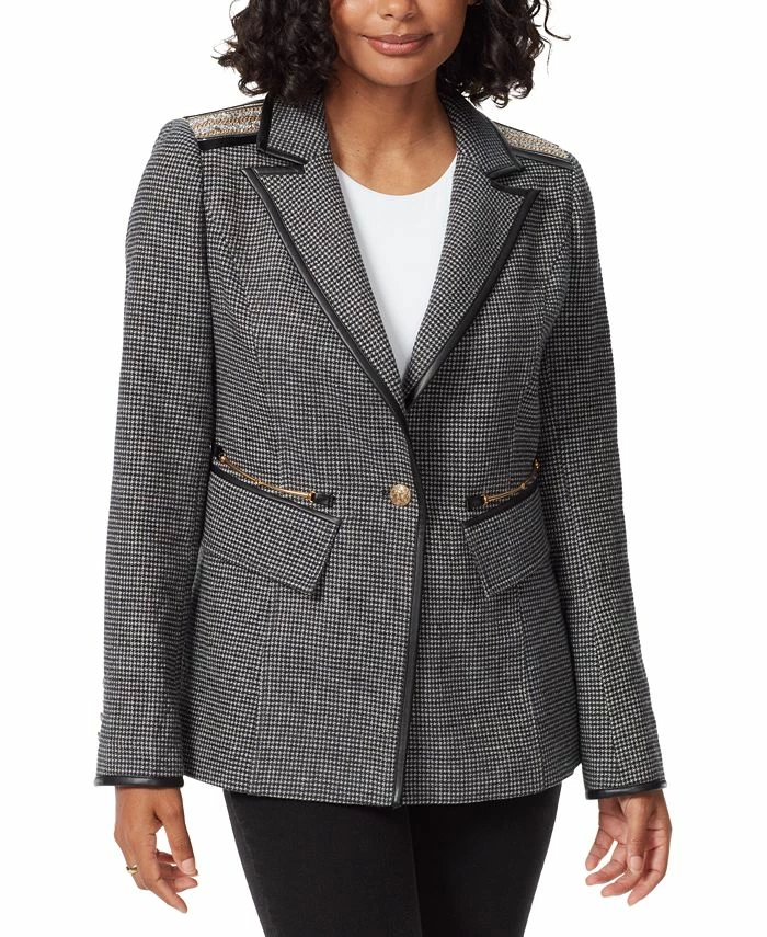 This Sam Edelman tapered, single breasted blazer is detailed to the max. Designed with faux-leather trim and medal hardware details, this blazer is sure to impress.