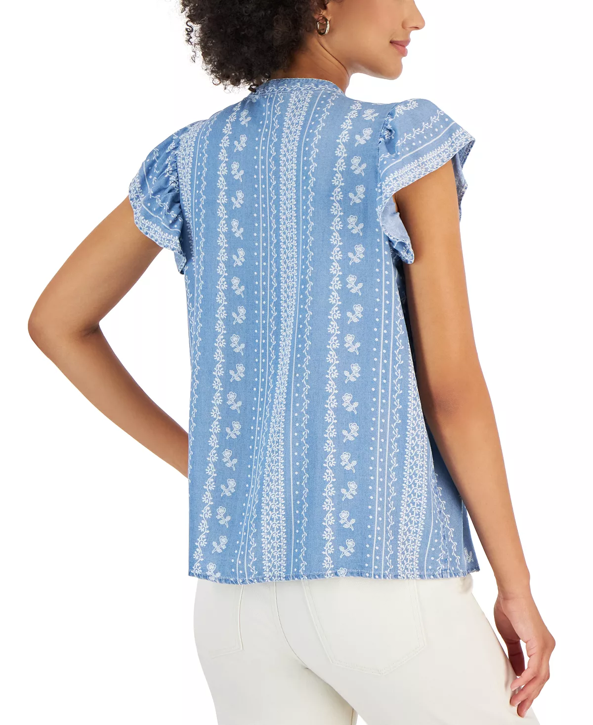 Vintage-inspired prints form subtle stripes, bringing this gauzy split-neck top from Style & Co to a charming finish.