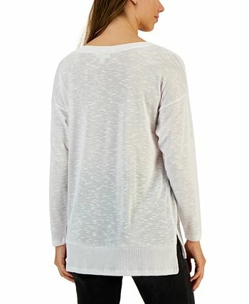 A deep V-neckline enhances the relaxed look of this comfy pullover snit top from Style & Co.