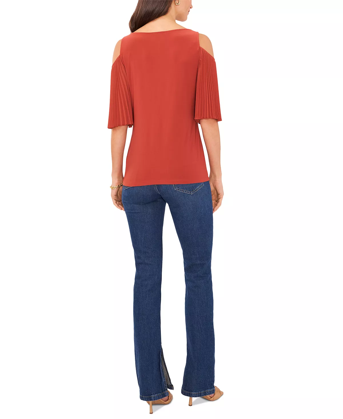 Polished pleats repeat all around cold-shoulder cutouts in this Vince Camuto V-neck top that you’ll wear time and time again.
