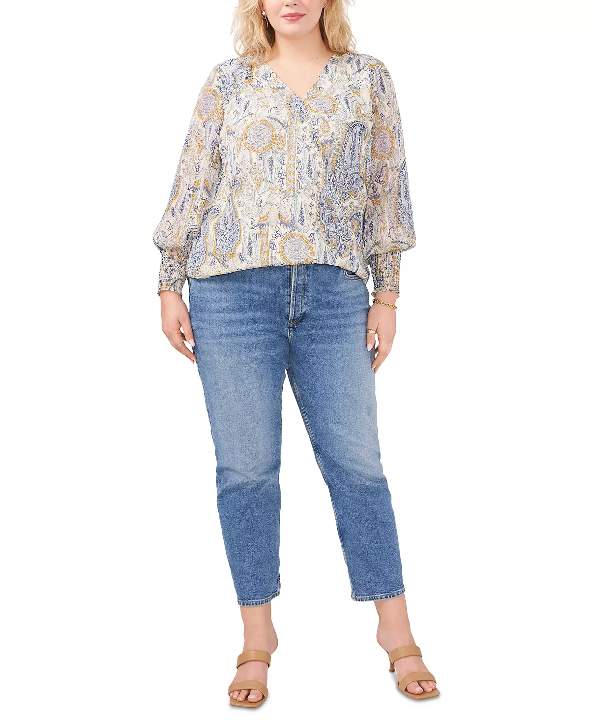 Look pretty in paisley with this crossover plus size top from Vince Camuto.