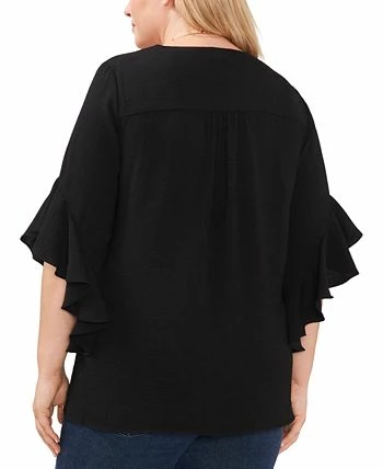 Fluttery sleeves lend endless beauty to this plus size Vince Camuto top, while a crossover hem lends a touch of whimsy.