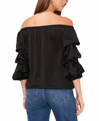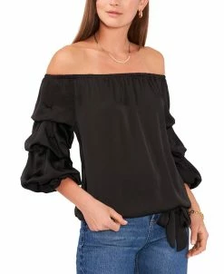 Tiered balloon sleeves bring stylish dimension to this boho-chic top from Vince Camuto. A tie at the hem punctuates the versatile look.
