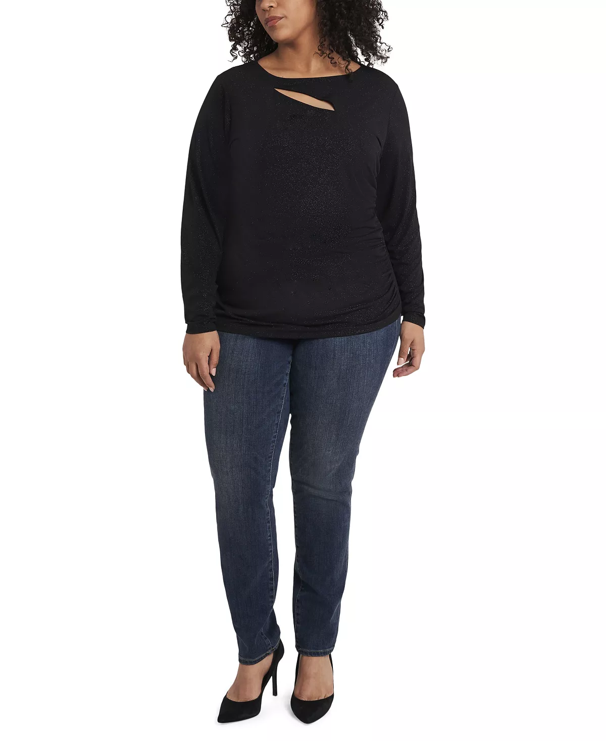 Vince Camuto’s sparkle jersey top is sassy and chic. Perfect for date night or girls night out.