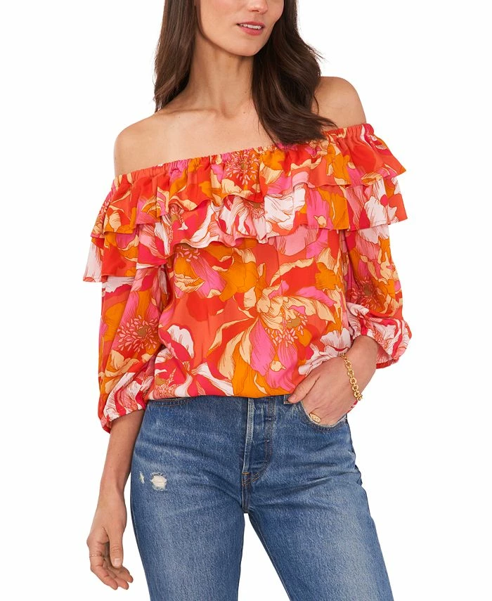 Double ruffles bring fresh fun to this Vince Camuto top, an off-the-shoulder silhouette updated in current color.